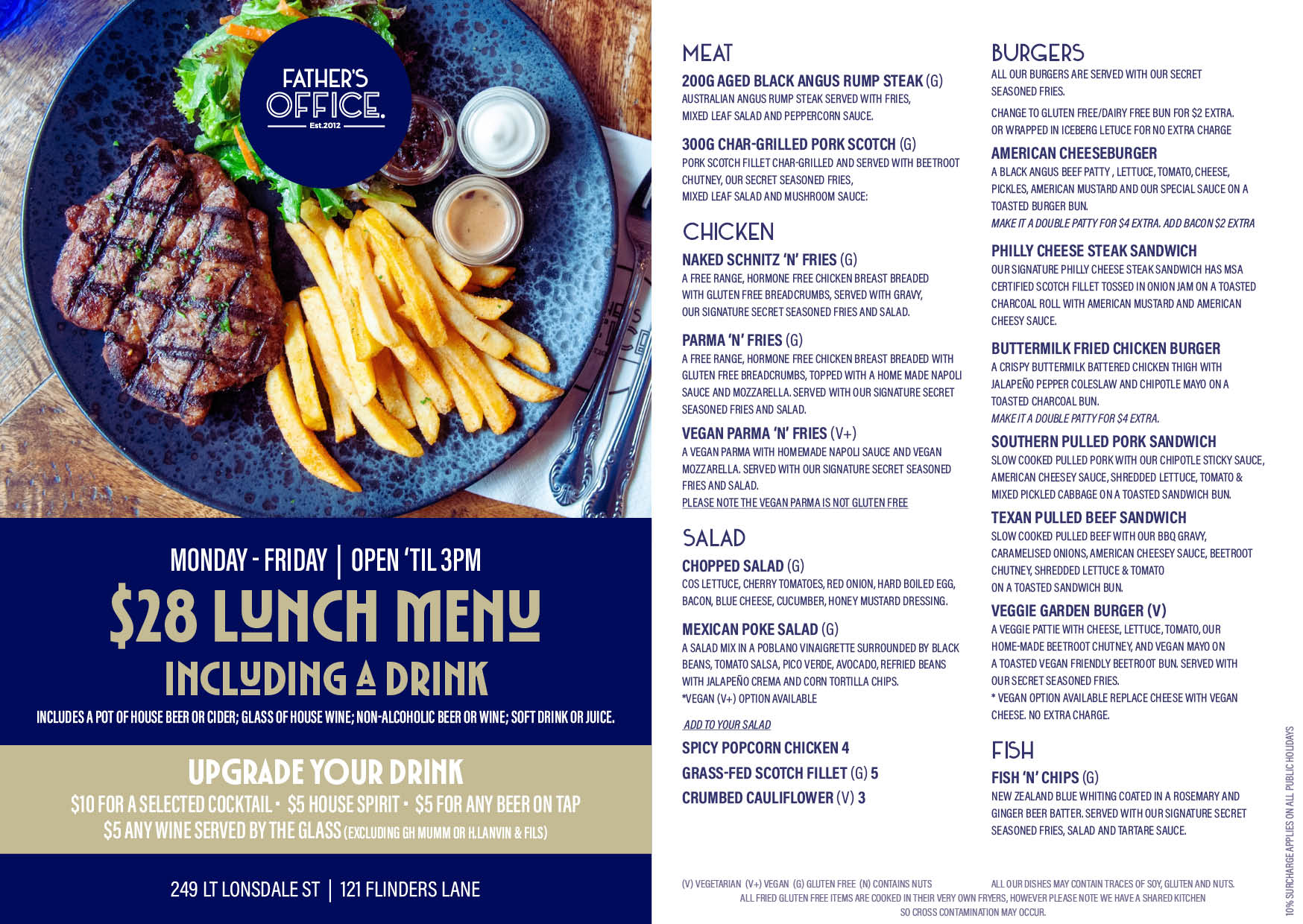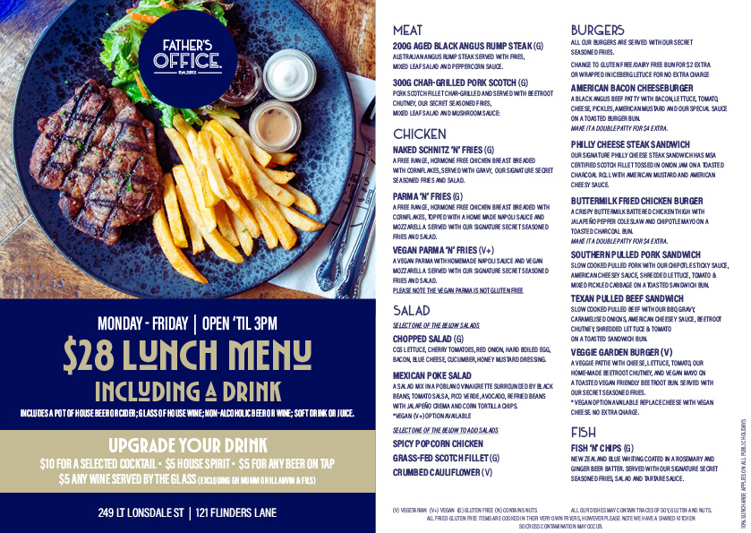 Check out our $28 Express Lunch menu, which includes a pot of house beer, a glass of wine, or a soft drink. With over 10 mouthwatering meals to choose from, it’s the perfect way to satisfy your cravings without breaking the bank!
