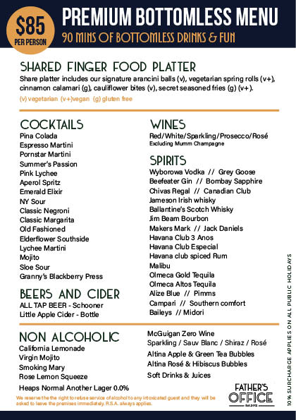 Enjoy 90 minutes of bottomless cocktails including our Pornstar Martini, sip on a Pink Lychee or ease into the day with our Virgin Mojitos whilst enjoying a shared platter of some of our favourite treats.