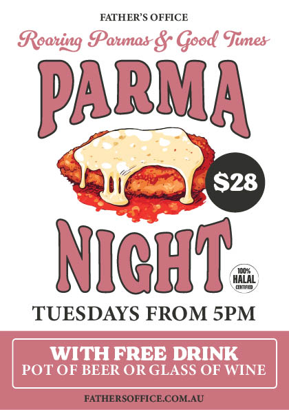 Get your taste buds ready for our mouth-watering $28 parma night with a parma, fries & salad with a pot of house beer, a glass of wine or a soft drink! Don’t miss out on this amazing deal that will have you coming back for more!